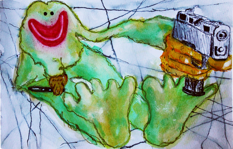 Dr. Berry continued, “Like limbs, teeth are thinking appendages.” As Russell continued his pain—there must be cruelty—Dr. Berry pursued his conversation with an invisible interlocutor. “I’m afraid of his mouth. It’s beset with brown eyes.” This as Dr. Berry toweled off tortillas bearing a selection of saint’s relics.